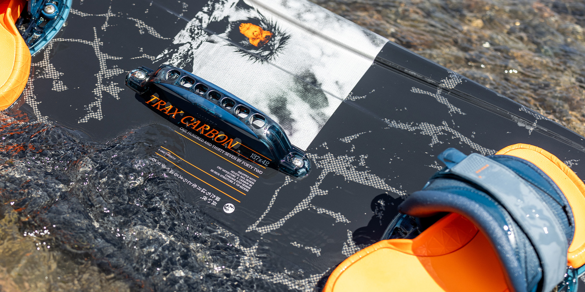 The board’s flex has been tuned with the properties of carbon fiber to provide the best pop off the water, and the tips are exceedingly responsive, thus helping you when you load up the edge for take-off. When it comes to landings, the wide outline and channeled base combine to smooth things out and allow you to always retain control.